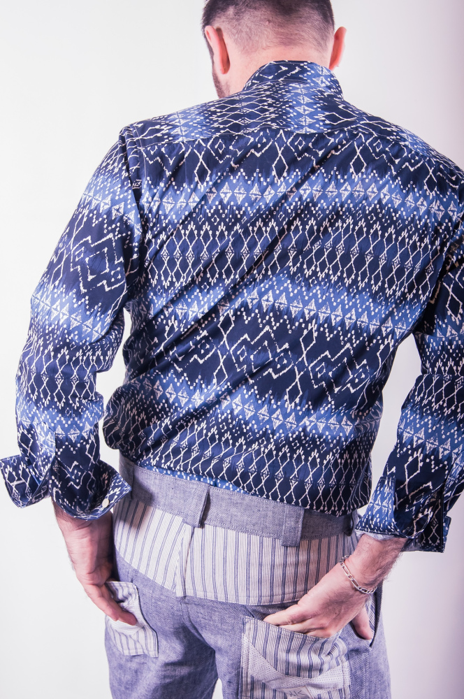 La chemise “Batik Bleu” est fabriquée à la main dans mon atelier installé en Loir-et-Cher